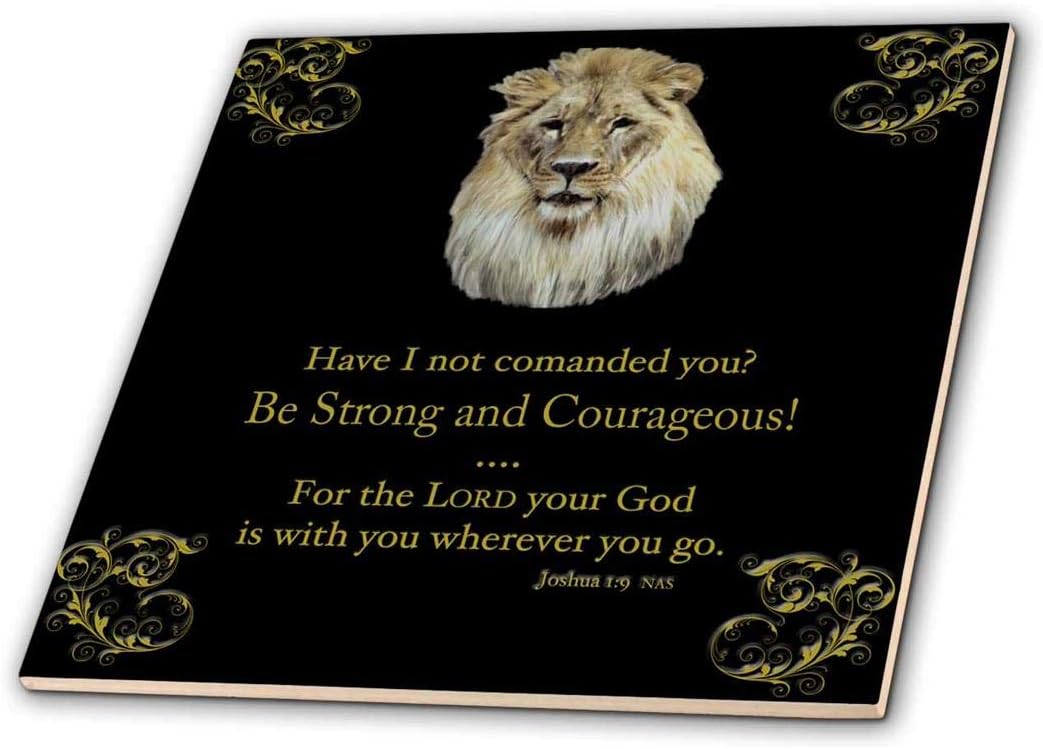 Amazon Com 3drose 3d Rose Joshua 1 Verse 9 Be Strong And Courageous Illustrated With A Lion In Gold On A Black Background Ceramic Tile 8 Inch Ct 425 3 8 Home Kitchen