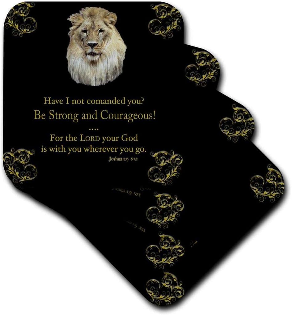 Amazon Com 3drose Cst 425 2 Joshua 1 Verse 9 Be Strong And Courageous Illustrated With A Lion In Gold On A Black Background Soft Coasters Set Of 8 Home Kitchen