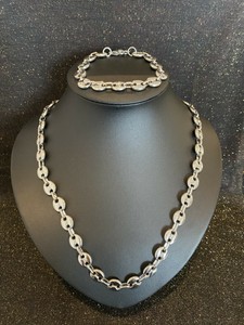 Parure Homme Grosse Maille Grain De Cafe En Acier Bracelet Collier