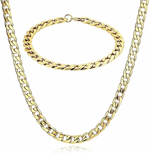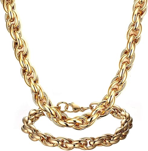 Caimeytie Parure Collier Et Bracelet Homme En Acier Au Titane Or Chaines Epaisses Bijoux Amazon Fr Bijoux