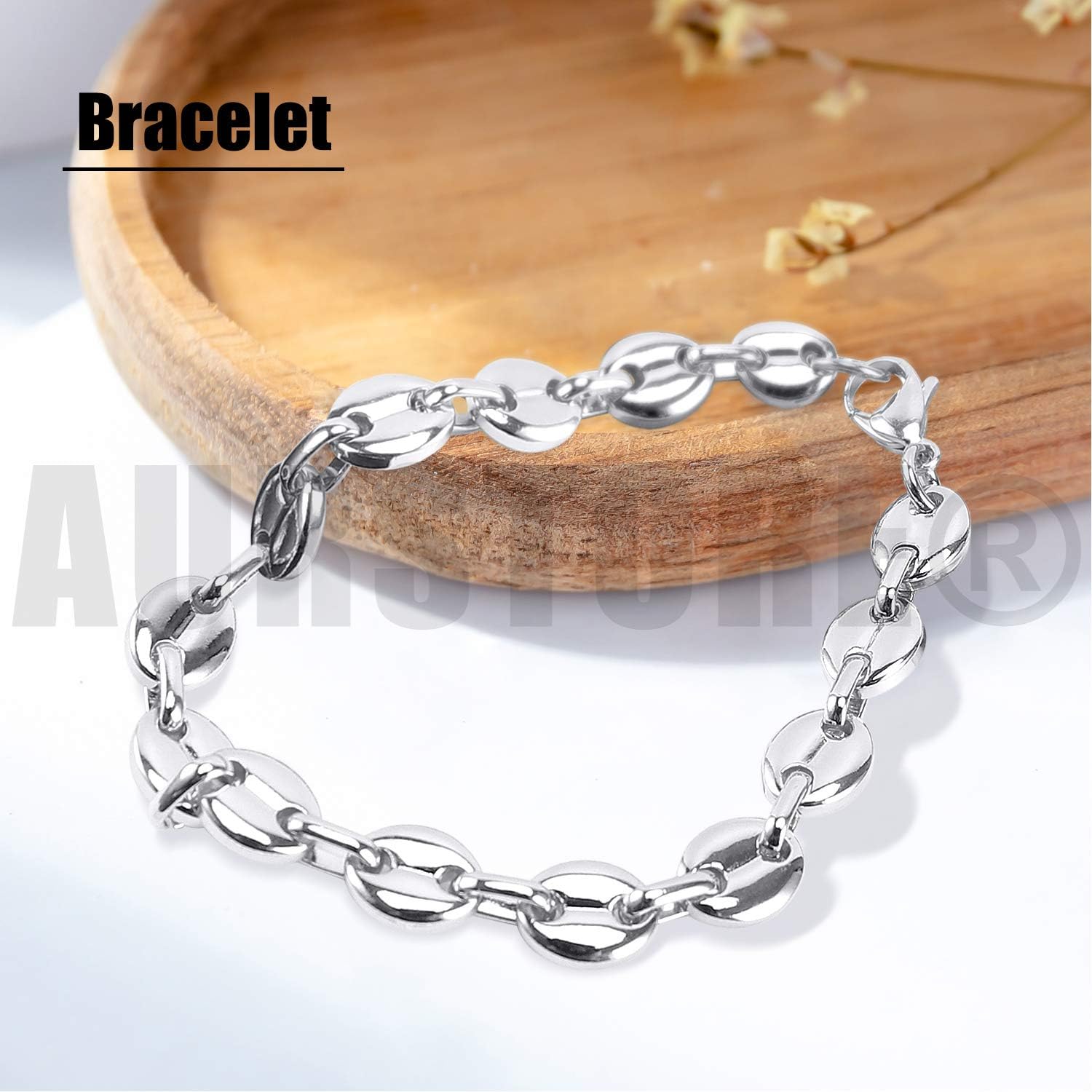 Aurstore Parure Bracelet Et Chaine Homme Acier Inox Massif Grain De Cafe Taille Couleurs Au Choix Argente 11 Amazon Fr Bijoux