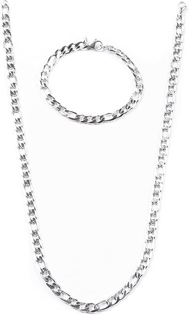 Parure Bracelet Et Chaine Pour Homme Acier Inoxydable Maille Figaro