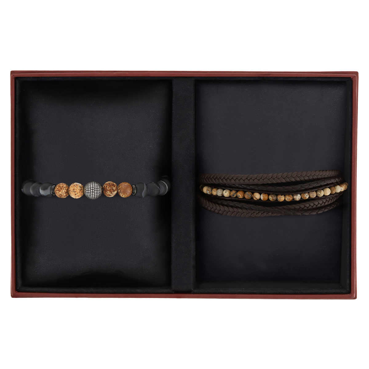 Composition Bracelet Charms Thabora Pour Homme Cuir Et Acier Marron