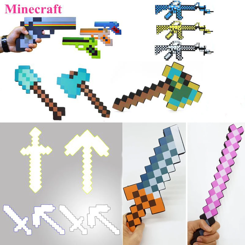ツ Minecraft Jouets Armes En Mousse Diamant Choisir Hache Pelle Pistolet Eva Mod Le Figurine Action Jouet Cadeau Pour Enfants