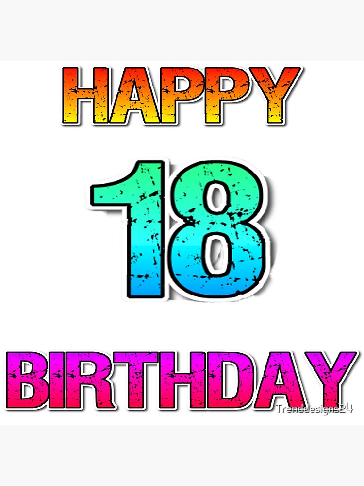 Happy 18th Birthday Banner, Happy 18th Birthday Banner, Happy 18th Birthday Sign, Rose Gold Banner, 18th Birthday Decorations, Glitz 18th birthday shirt,18th birthday,Adulting Shirt,18th birthday gifts,18 years old,Official Adult shirt,Funny Adult tee,18 tshirt,Unisex tee MyVisualArts From shop MyVisualArts 5 out of. To a very special 18yearold, a very happy birthday!. Artist Teri Nelson Kuster Artist Notes The very special 18 year old you know, who is having a birthday soon, will love this stunning card The numeral 18 appears on a black background, with each number, in a different color and pattern.