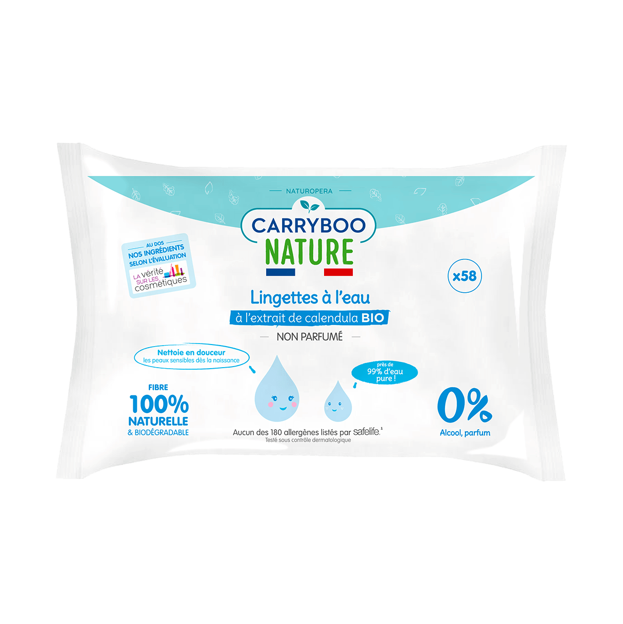 58 Lingettes Eau Sans Parfum Extrait De Calendula Bio Carryboo