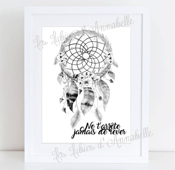 Affiche Attrape Reves Indien Noir Et Blanc Etsy