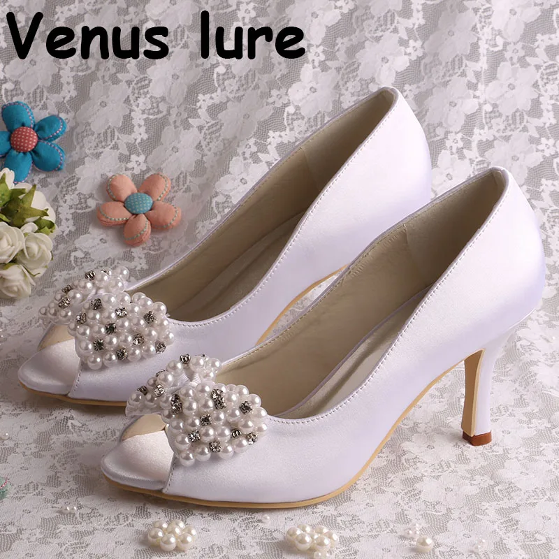 Chaussures De Mariage A Talons Blancs Sur Mesure Chaussures A Bout Ouvert Pour Dames Aliexpress