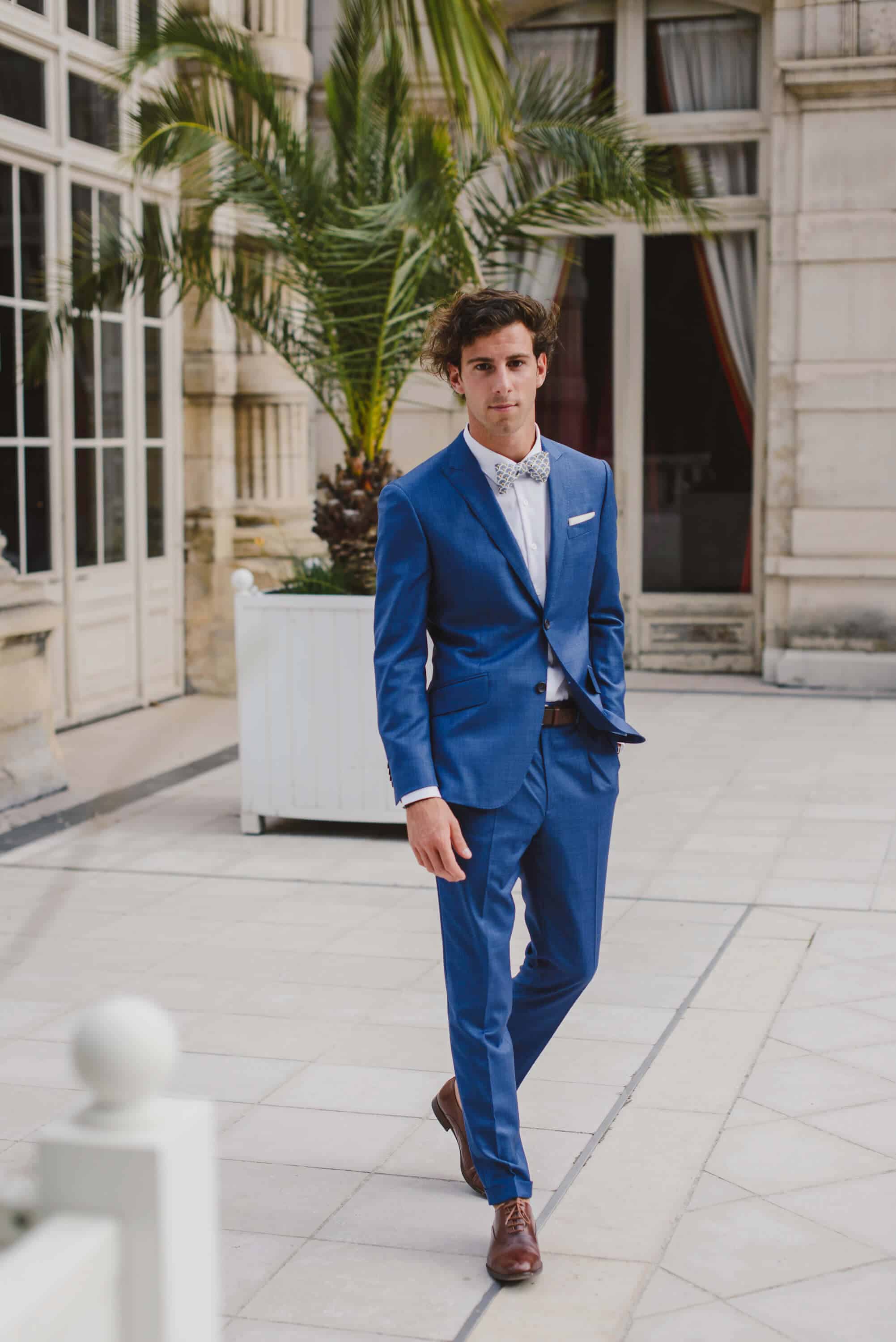 Costume De Mariage Sur Mesure Bleu Raye Alferano