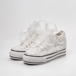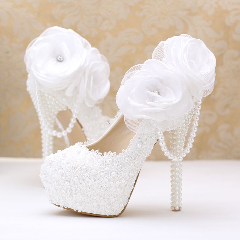 Acheter Perles Cristaux Chaussures De Mariage Blanc Fait Sur Mesure Taille 10 Cm 12 Cm 14 Cm Talon Haut Chaussures De Mariee Party Prom Femmes Pompes Livraison Gratuite De 33 6 Du Sanique Dhgate Com