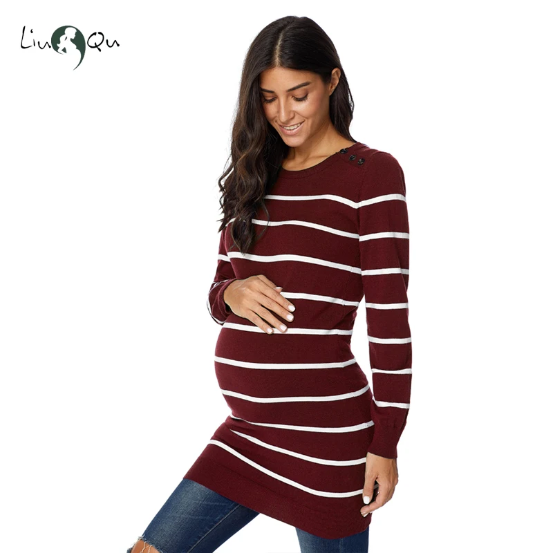 Femmes A Manches Longues Raye Maternite Pulls Pulls Robes Grossesse Chaud Doux Hiver Vetements Flatteurs Femmes Chandails Aliexpress