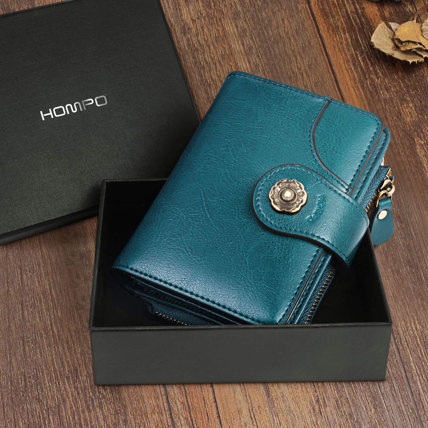 Bleu Portefeuille Femme Cuir Porte Monnaie Hompo Petit Portefeuille En Cuir Veritable Pour Femmes Compagnon Portefeuille Femme Avec Rfid Blocage 16 Emplacements Cartes Et 1 Poche Zippee Monnaie Bagages Portefeuilles