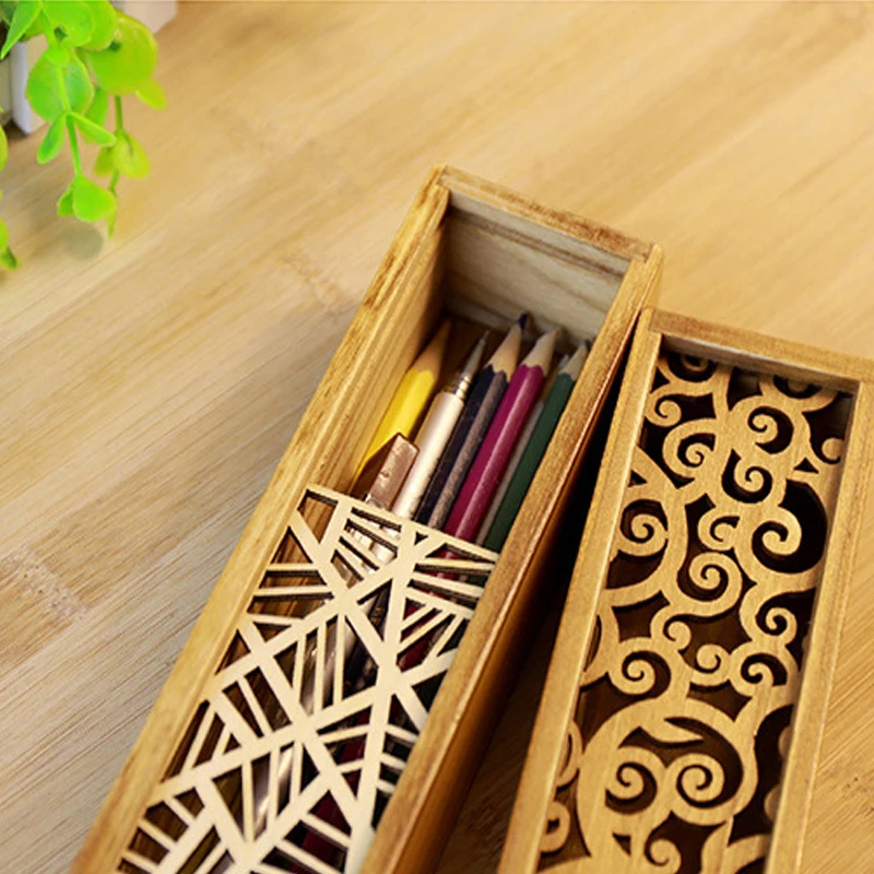 Boite De Rangement A Crayons En Bois Creux Etudiants Creatifs Mignon Boite A Crayons En Bois Multifonction Papeterie Ecole Cadeau Outil De Stockage Aliexpress