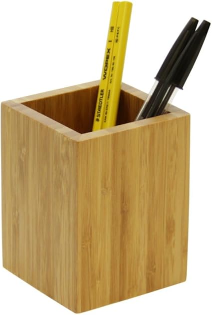 Pot A Crayons Et Stylos Carre En Bambou Amazon Fr Fournitures De Bureau