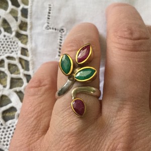 Sublme Ancienne Bague Vermeil Argent Massif Rubis Emeraude Design Createur Ebay