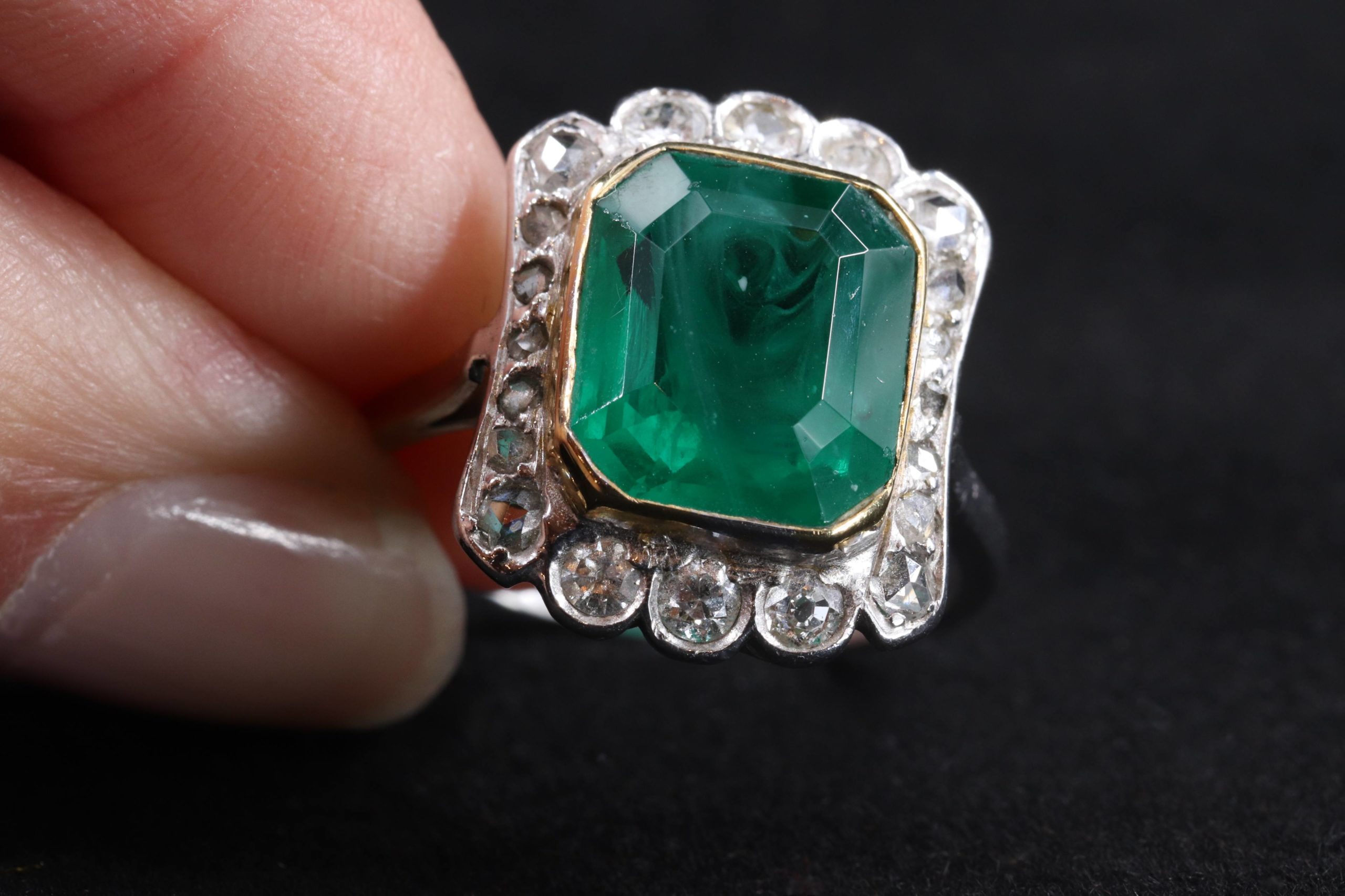 Troc Echange Tres Ancienne Bague Emeraude 11 Diamants Realisation Futur Technicien En Joaillerie Ecole Boule Debut Xx Sur France Troc Com