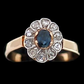 Bague Ancienne Marguerite En Or Saphir Et Diamants