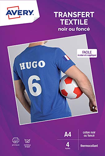 Avery Papier Transfert Sur T Shirt Textile Fonce 4 Feuilles Impression Jet D Encre Pas Cher Bureau Vallee
