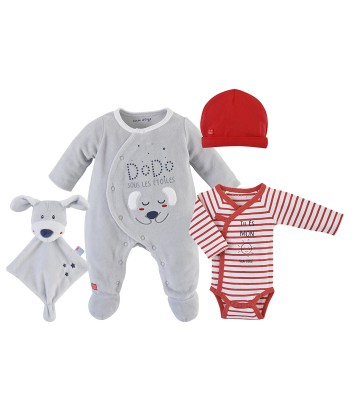 Un choix unique de Ensemble naissance mixte disponible dans notre magasin Codes promo, ventes flash, livraison offerte, trouvez le produit de vos rêves à prix réduit !. Petit Béguin® saura habiller votre bambin en été comme en hiver grâce à sa collection colorée d’ensemble chaud à manches longues ou manches courtes, d’ensemble bébé garçon 2 ou 3 pièces Avec ses kits de naissance, Petit Béguin® pense aussi au confort des nouveaux nés. SET DE NAISSANCE MIXTE GRIS/BLANC – Sucre d’Orge Set de naissance gris/blanc Sucre d'Orge Ensemble très complet qui contient tout ce qui est indispensable à la naissance de bébé dorsbien, bonnet, body et doudou pour les câlins Pyjama en velours rasé 75% coton 25% polyester avec ouverture intégrale pressionnée Impression applique.