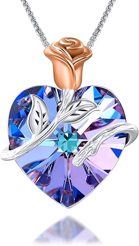 Collier Pendentif Fleur Rose Coeur Pour Femme Avec Cristaux Swarovski Colliers Plaques Or Rose 14k Bijoux Pour Maman Petite Amie Epouse Pour Anniversaire Anniversaire White Amazon Fr Bijoux