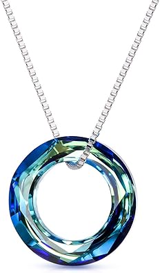 Collier Cercle Argent Sterling Pendentif Avec Bleu Swarovski Cristal Cadeaux D Anniversaire Pour Femme Petite Amie Maman Bleu 14mm Amazon Fr Bijoux