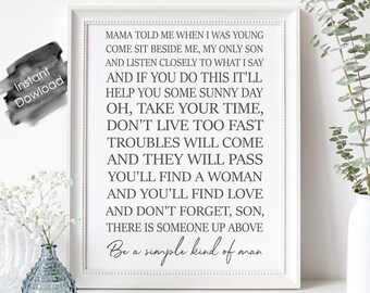 Simple Man Lyrics Mama told me when I was young / "Come sit beside me, my only son / And listen closely to what I say / And if you do this, it'll help you some sunny day, ah yeah" / (Be a simple. "Forget your lust for the rich man's gold All that you need is in your soul And you can do this if you try All that I want for you my son, is to be satisfied "And be a simple kind of man Oh, be somethin' you love and understand Baby, be a simple kind of man. Buy Simple Man Lyrics in Guitar Black Custom Vinyl Wall Art Decal Decor, Wall Decor, for Homes, Offices, Kids Rooms, Nurseries, Schools, High Schools, Colleges, Universities, Interior Designers, Architects, Remodelers Wall Stickers & Murals Amazoncom FREE DELIVERY possible on eligible purchases.