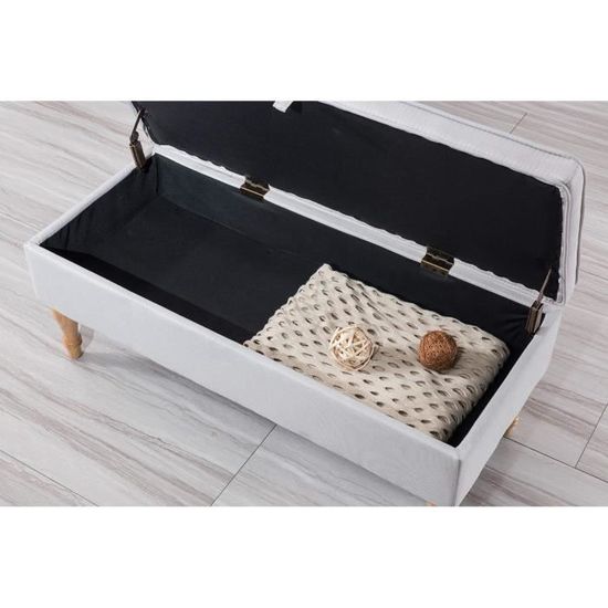 Banc Coffre Rangement Sur Pied 100 Cm En Tissu Gris Clair