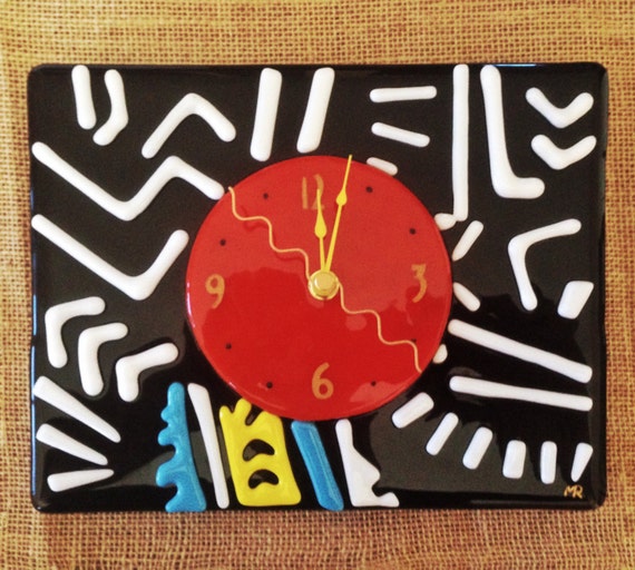 Art Deco En Fusion Horloge Murale En Verre Etsy
