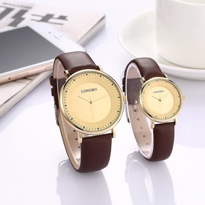 Montre Bracelet Cuir Luxe Femme Homme Quartz Or Cadran Marron Couple Cadeau Pour Saint Valentin Achat Vente Montre Montre Bracelet Cuir Luxe F Cdiscount