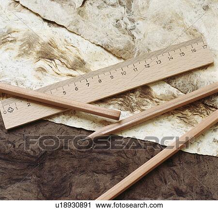 Gros Plan De Bois Crayons Et Regle Sur Fait Main Papier Banque D Image U1301 Fotosearch