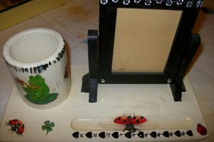 Deco Sur Bois Fait Main Cadre Pot A Crayon Grenouilles Ebay