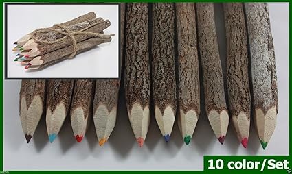 Lot De 10 Crayons De Couleur En Bois Naturel Fait A La Main Longueur 13 Cm Amazon Fr Fournitures De Bureau