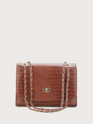 Sac Besace Exotic Croco Souple Marron Lancaster