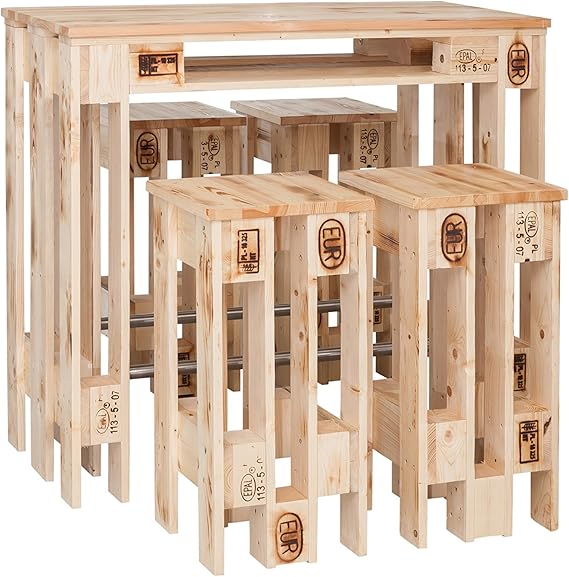 Welcon Comptoir Et 4 Tabourets De Bar Au Design Euro Palettes Les Comptoirs Et Tabourets Sont Fabriques A La Main En Bois Meuble Au Design De Palettes D Europe De Bar Et