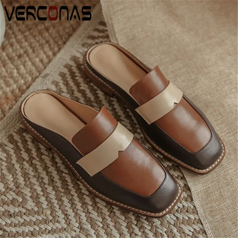 Verconas Mules En Cuir Veritable Pour Femmes Chaussures Elegantes A Talons Carres Chaussures Tendance Nouveaute Aliexpress