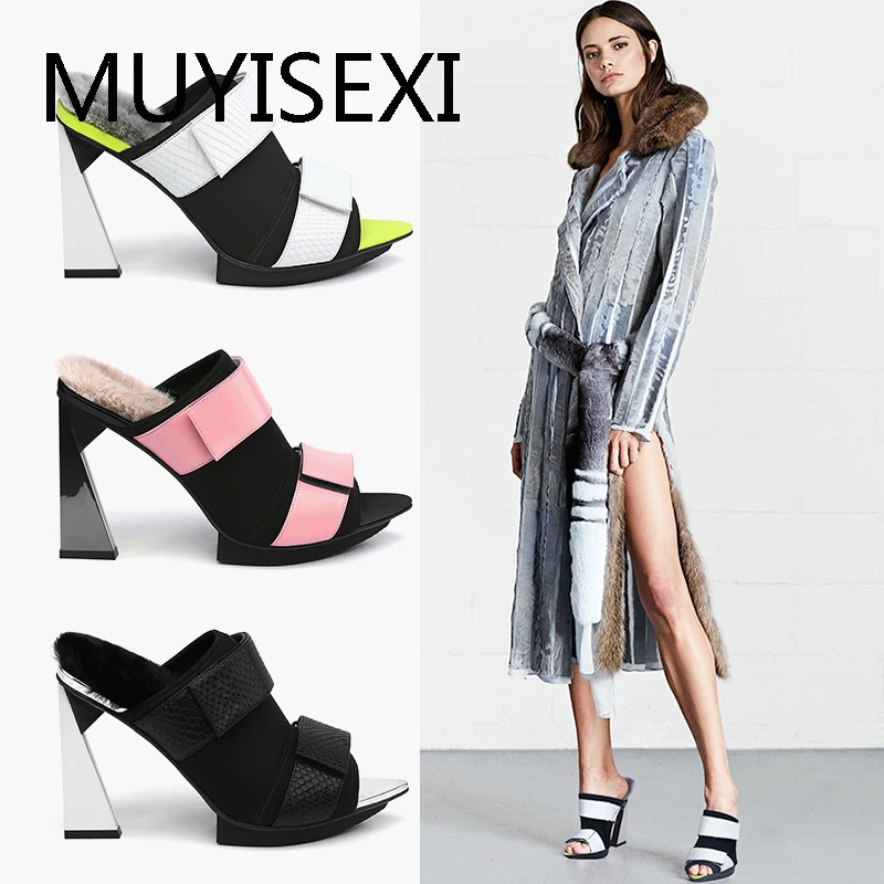 Mules En Cuir Veritable Pour Femmes Plateforme Avec Fourrure De Lapin Pantoufles A Talons Hauts Extremes De 11cm Rose Noir Et Blanc Hl123 Muyisexi Aliexpress
