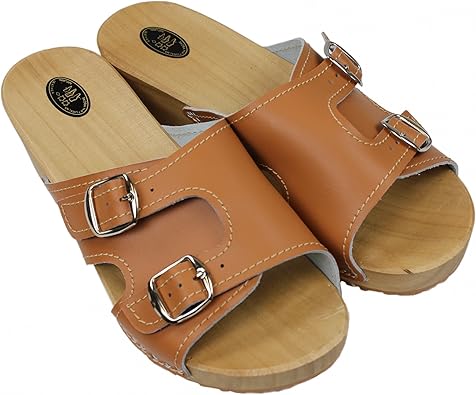 Mules A Talons En Bois Sabots En Cuir Pour Femme Marron Marron Amazon Fr Chaussures Et Sacs