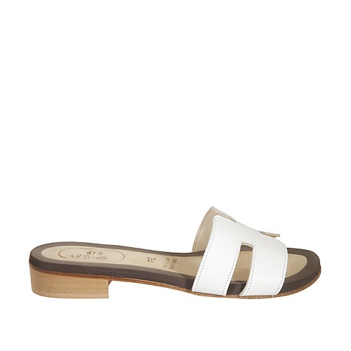 Mule Pour Femmes En Cuir Blanc Talon 2