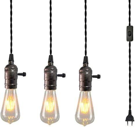 Suspension Luminaire Retro Led Pendentif Lampe Avec Interrupteur A Bouton Poussoir Bs Eu Cable De Prise Lampe Suspendue E27x3 Eclairage Lampes Pour Salon Chambre A Coucher Restaurant Couloir Amazon Fr Luminaires Et Eclairage