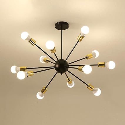Lustre Sputnik 12 Lumieres Lampe A Suspension Vintage Industrielle Avec Fini Prise De Support Noir Pour Chambre Salle Manger Salon Cour Couloir Amazon Fr Cuisine Maison