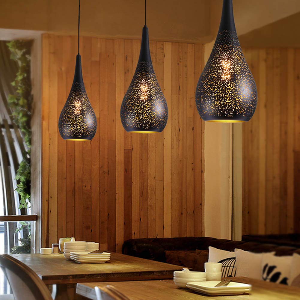 Retro Plafond Lumiere Pendante Droplight Avec Abat Jour Creux Loft Lustre Industriel Prise E27 Led Lampe A Suspension Fixation Pour Bar Restaurant Table A Manger Cafe Noir Luminaires Interieur Eclairage De Plafond