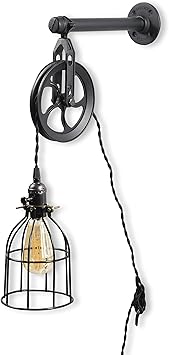 Rustique State Vintage Chic Unique Industriel Tuyau Et Poulie Design Murale Lampe Suspendue Avec Tissu Cordon Led Edison Ampoule En Noir Amazon Ca Outils Et Bricolage