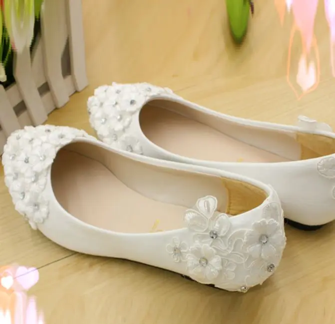 Grandes Tailles 40 41 42 Chaussures A Talons Plats De Mariage Pour Femme Dentelle Fleurs Strass A La Main Mode Blanc Dentelle Mariee Chaussure De Mariage Aliexpress