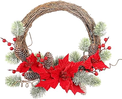 Liu Guirlande De Noel Decoree De Fleurs De Noel Rouges Artificielles Pommes De Pin Et Branches De Pin For La Decoration De Fenetre De Mur De Porte D Entree Amazon Fr Cuisine Maison