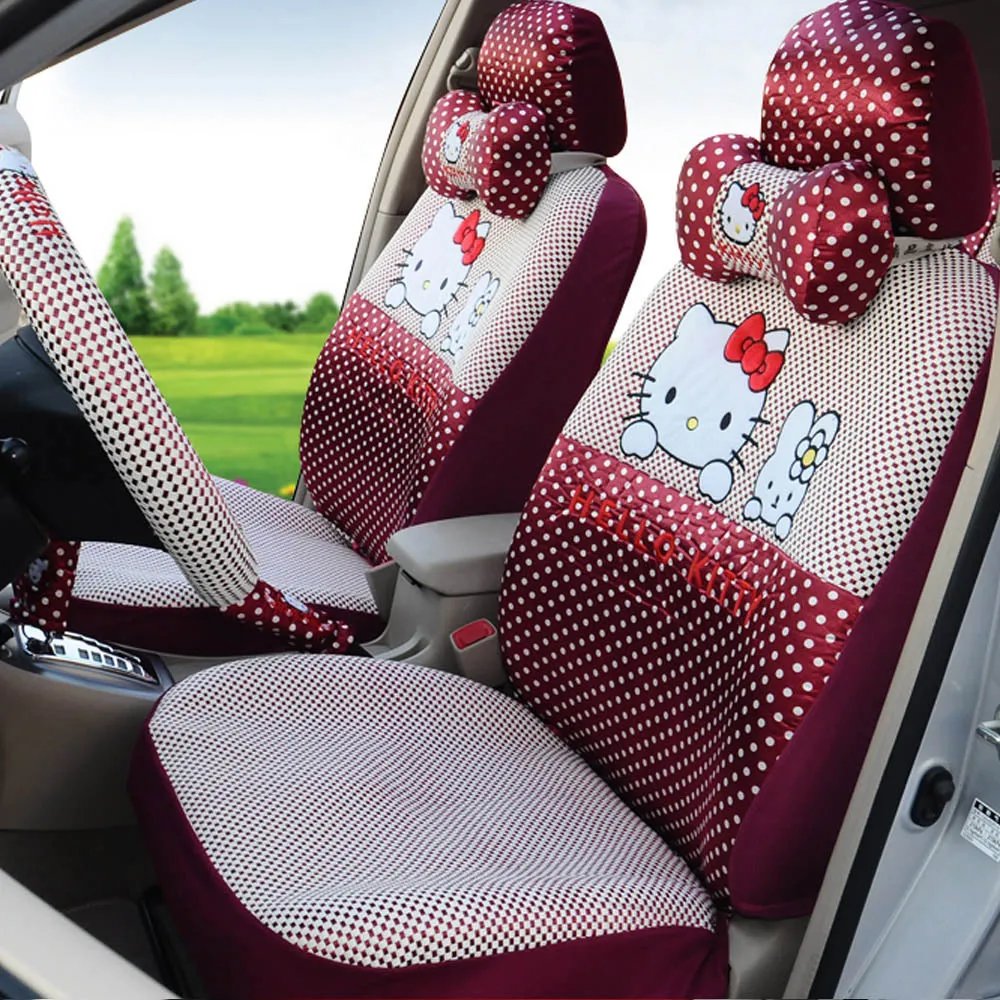 Bonjour Kitty 18 Pcs Universal Housses De Siege De Voiture De Soie De Glace Rose Rouge Couverture De Volant De Voiture Automobile Housses De Siege De Voiture Aliexpress