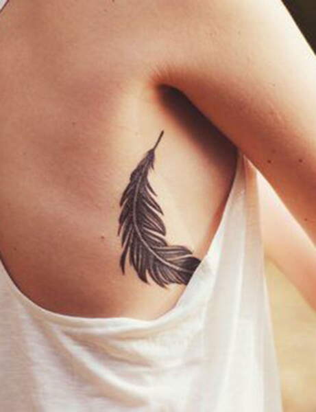 Tatouage Femme Noire Modele Tatouage Plume Noire Cotes Sous Poitrine