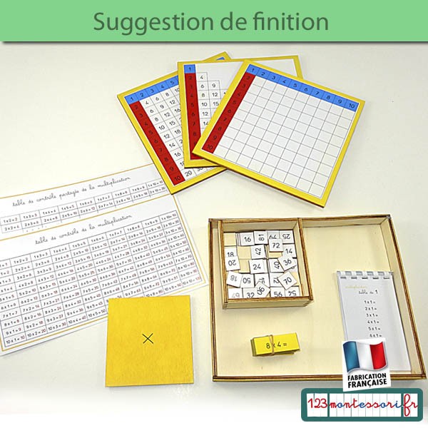 Suite à notre article Réaliser la Table de Pythagore selon Montessori Modèle Sensoriel en Carton, nous évoluons dans la compréhension de la multiplication avec une planche à visée concrète Cet outil qui permet de comprendre « ce que multiplier veut dire », offre une opportunité de transition entre le modèle sensoriel et le modèle chiffré que l’on rencontre dans le matériel. Le damier se présente après la grande multiplication, lorsque l'enfant a bien avancé dans la mémorisation de la multiplication On s'en sert avec les perles de la table de pythagore en perles Nous vous proposons un plateau gravé (63 x 39 cm) sur lequel vous pourrez coller des morceaux de feutrine peindre les carrés du damier selon le. 15 juin 13 Le premier outils Montessori que je vous présente est le damier de la multiplication Il permet à l'élève de comprendre le sens de la muliplication posée La fabrication Voici les.