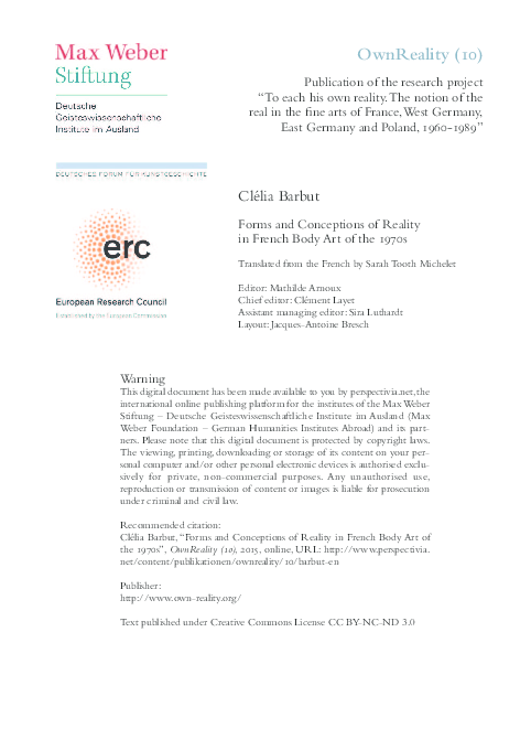 Pdf Forms And Conceptions Of Reality In French Body Art Of The 1970s Clelia Barbut Academia Edu