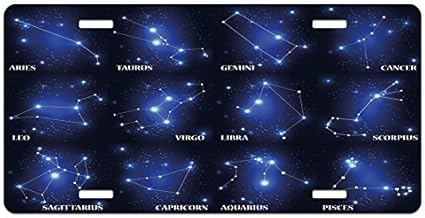 Zaeshe Constellation Zodiaque Ensemble De Plaque D Immatriculation Des Symboles Et Des Noms De Groupe D Etoiles Cluster Esoterique Haute En Aluminium Brillant Fantaisie Plate 15 2 X 30 5 Cm Bleu Fonce Bleu Blanc Amazon Fr Sports