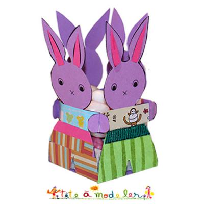 Coller les deux parties du lapin l'une sur l'autre et laisser sécher Coller les pattes du lapin de chaque côté de la boîte Coller les éléments de décoration sur le devant de la boîte Découper de fines lamelles de papier pour faire de la paille et remplir le fond du panier Remplissez le panier de chocolats de Pâques. Coloriage madame lapin de paques;. Faites votre choix !.
